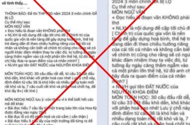 28 Tháng Sáu, 2024Tối 25/6, trong một số nhóm, diễn đàn trên mạng Internet có chia sẻ, lan truyền thông tin sai sự thật về việc lộ đề thi tốt nghiệp THPT năm 2024. Sau khi tiếp nhận phản ánh về sự việc...