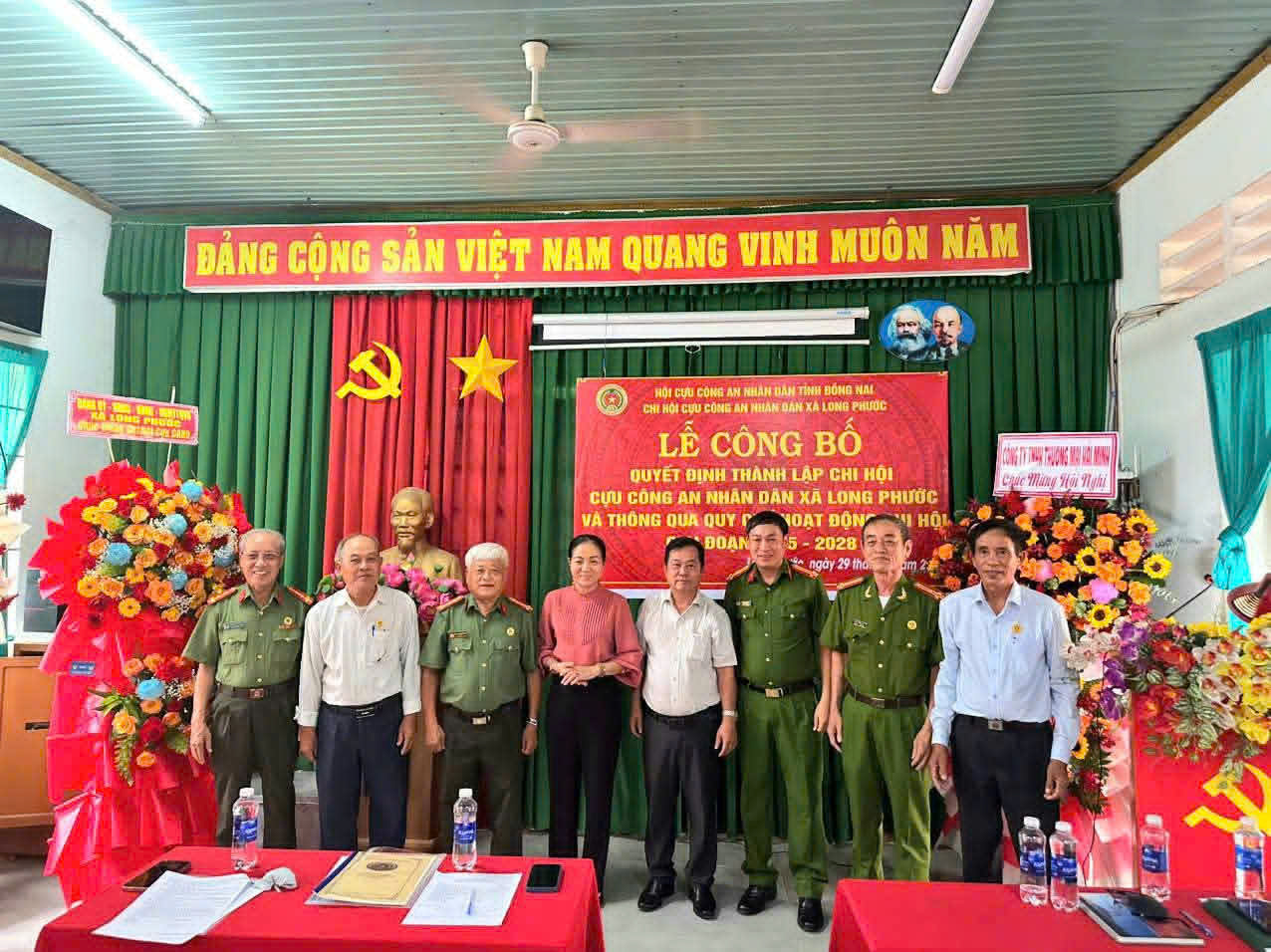 Tại buổi lễ, đại diện Hội Cựu Công an nhân dân tỉnh đã trao Quyết định thành lập Hội Cựu Công an nhân dân xã Long Phước và ra mắt Ban Chấp hành Hội. Sự kiện có ý nghĩa quan trọng trong giai đoạn hiện nay, nhằm tập hợp, đoàn kết các thế hệ cán bộ, chiến sĩ Công an nhân dân đã nghỉ hưu, phát huy kinh nghiệm, trí tuệ, tinh thần trách nhiệm để tiếp tục đóng góp cho sự nghiệp giữ gìn an ninh, trật tự và phong trào toàn dân bảo vệ an ninh Tổ quốc tại cơ sở.